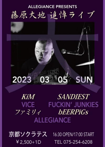 3/5(sun) ALLEGIANCE PRESENTS 藤原大地 追悼ライブ