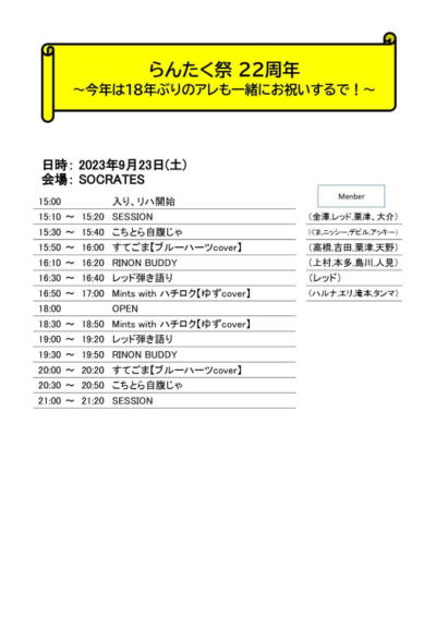9/23(sat) らんたく祭 22周年