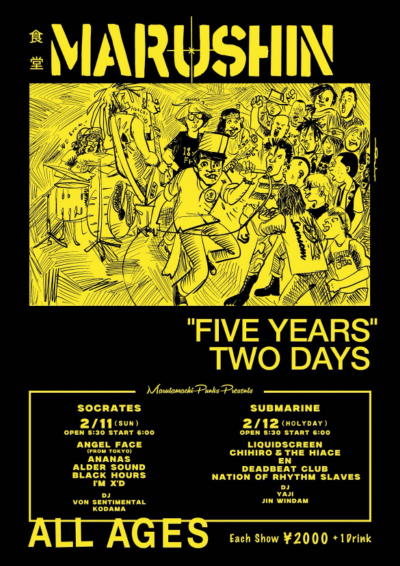 2/11(sun) 食堂MARUSHIN"FIVE YEARS"TWO DAYS