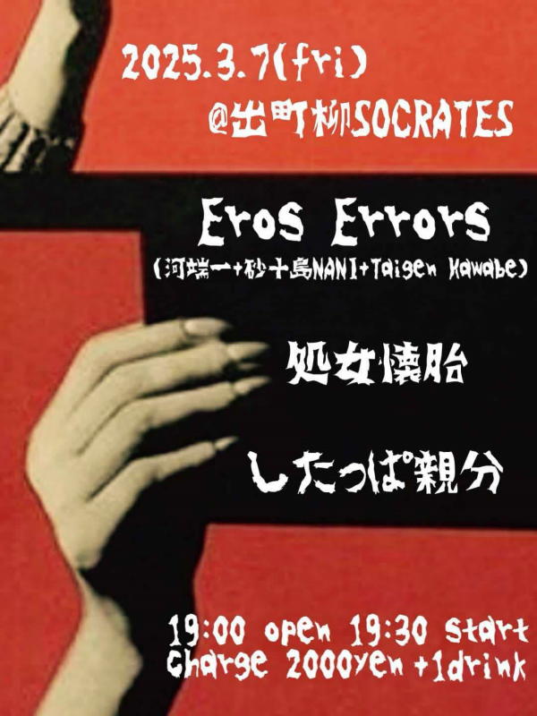 open/start17:00/17:30 charge ADV 2000yen / DOOR 2500yen(共に+1drink)